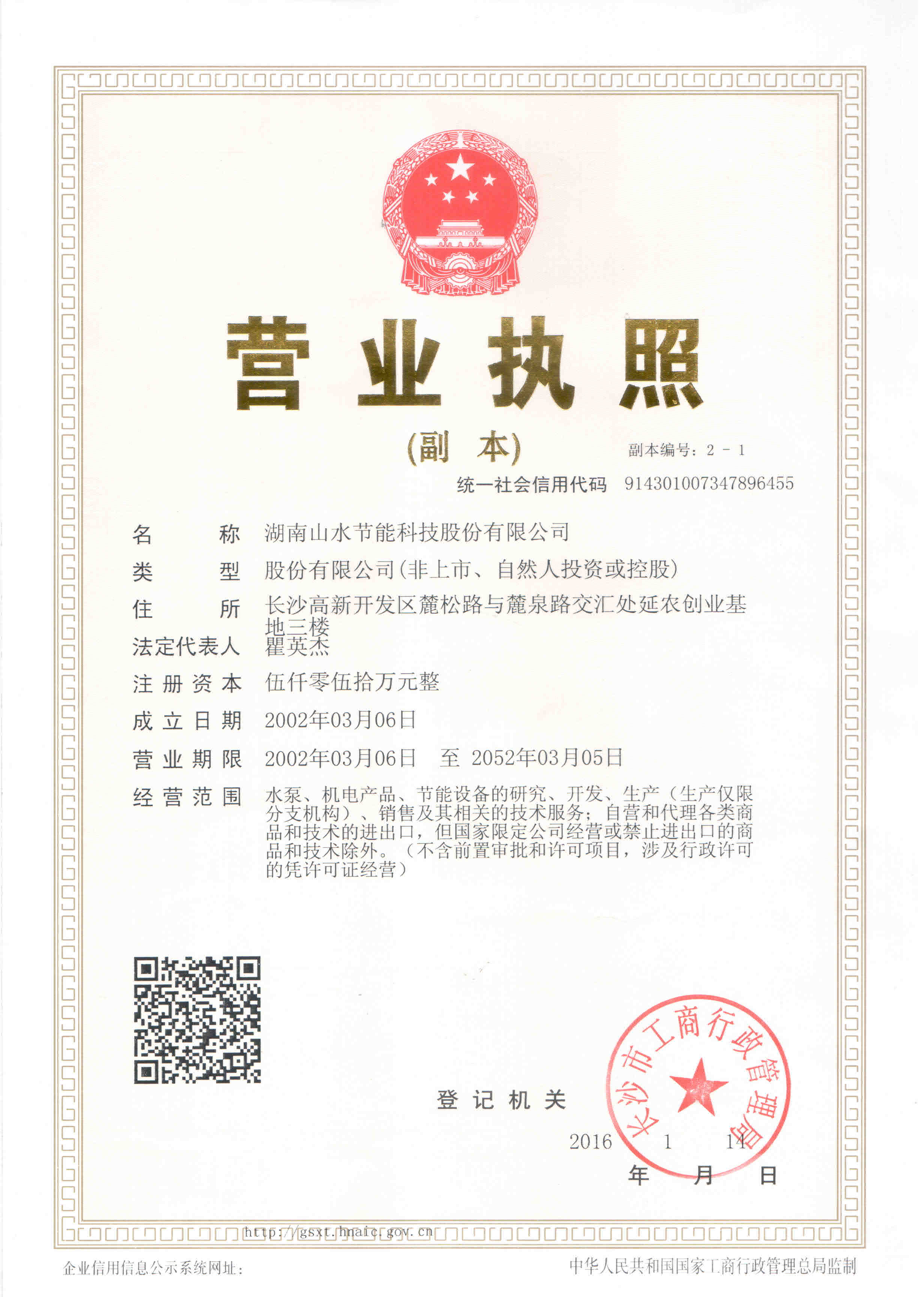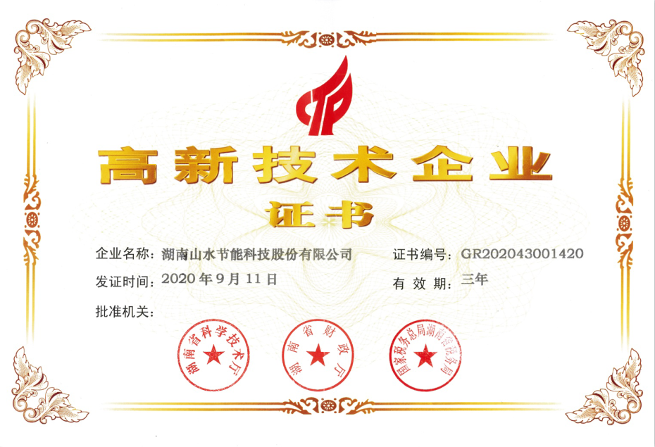 山水節能通過ISO9000、ISO14001環境體系認證、節能產品認證、節能服務資格認證、安全生產標準化認證;擁有中國石油一級物資供應商資格、中國石化物資供應商資格等。