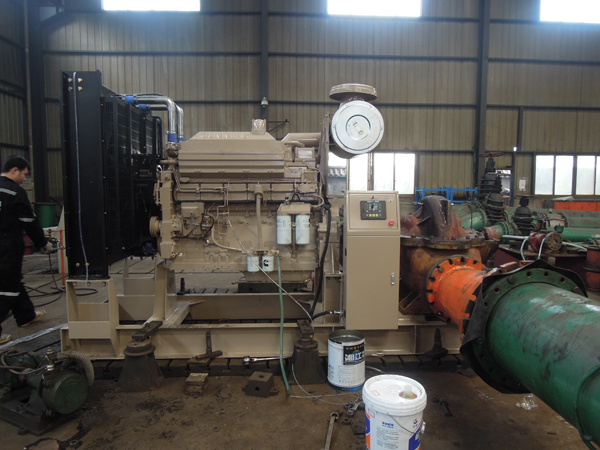 2013年3月我廠與美國客戶簽訂七臺XS300-470柴油機單級雙吸離心泵,此次簽訂的XS300-470型號單級雙吸離心泵是我廠根據客戶需要單獨開發的型號。4月12日我廠測試站對整機開始進行測試,隨著配套常用功率507KW柴油機的啟動,測試站工作人員開始對各項參數進行測試,測試項目包括:性能測試、出水口壓力、進水口壓力、氣蝕余量、震動測試、柴油機噪聲測試、軸功率、工頻、轉速等運行測試。經過兩小時的連續運轉測試,XS300-470柴油機單級雙吸離心泵運行工況正常,各項指標符合設計要求。