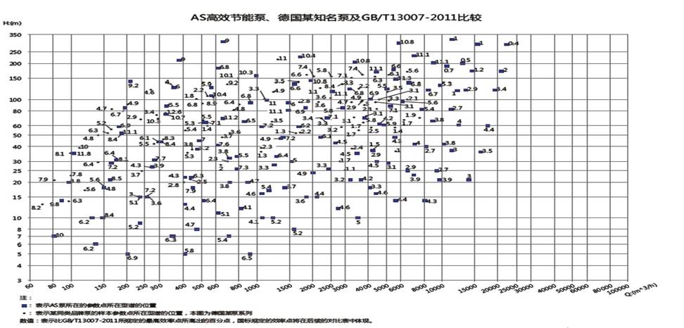 為進一步驗證該系列產品的超高效率,選取了德國、奧地利、丹麥最知名泵類品牌的同類產品在國家水泵測試中心進行了專業權威的效率對比實驗,測試結果均高于對比產品。經機械工業排灌機械產品質量檢測中心檢測,AS系列泵效率高,高效范圍寬,性能優于國家標準要求,試驗效率高于國家標準的規定值1~12個百分點,效率指標高于國內外同類產品,綜合技術指標居國際先進水平。