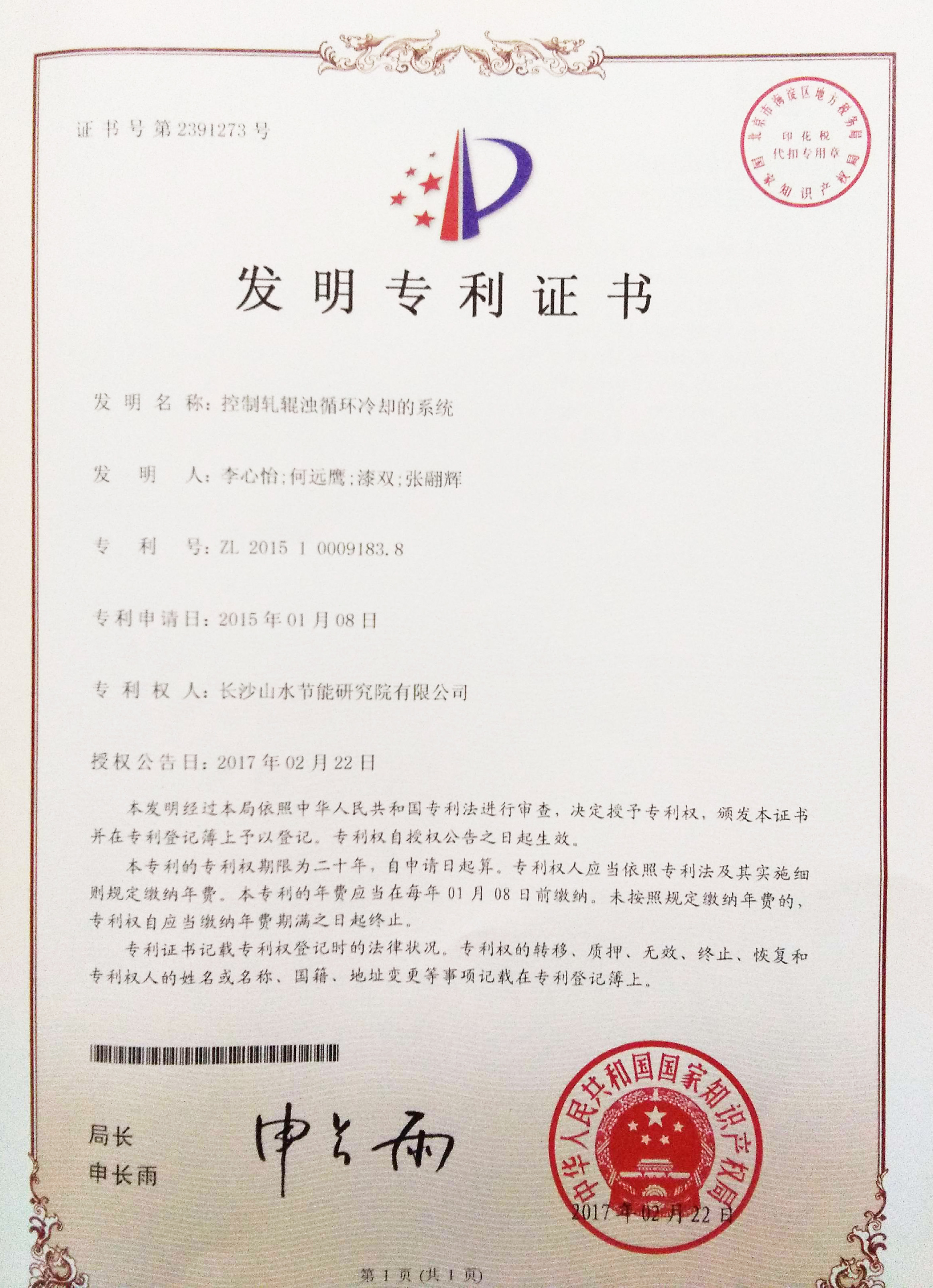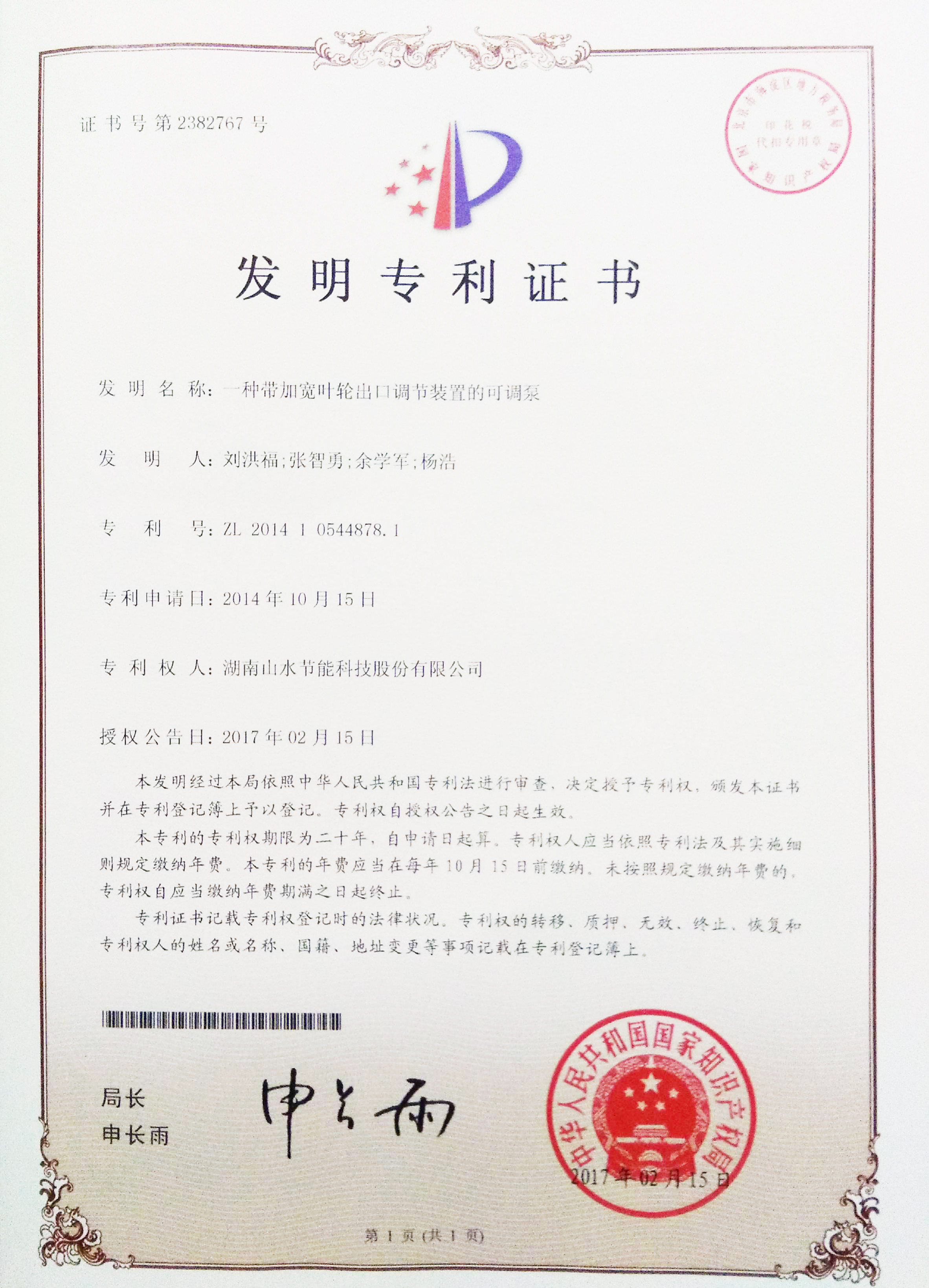 3-6月份,我司3項(xiàng)發(fā)明專利獲得國家知識產(chǎn)權(quán)局授權(quán),此3項(xiàng)專利名稱為“控制軋輥濁循環(huán)冷卻的系統(tǒng)”,專利號為ZL201510009183.8;一種帶加寬葉輪出口調(diào)節(jié)裝置的可調(diào)泵,專利號為201410544878.1一種帶減窄葉輪出口調(diào)節(jié)裝置的可調(diào)泵專利號為201410544541.0。標(biāo)志著我司在工業(yè)循環(huán)水系統(tǒng)節(jié)能領(lǐng)域技術(shù)創(chuàng)新上邁出重要一步。