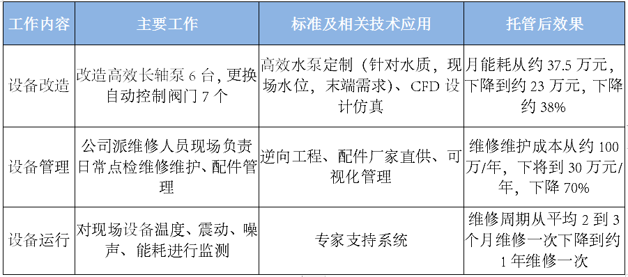 柳鋼熱軋2032線循環(huán)水系統(tǒng)旋流井工藝段,有7臺水泵,其中包括5臺抽水長軸泵,2臺沖渣泵,設(shè)備年代久遠(yuǎn),故障率頻繁及運(yùn)行成本高,給用戶帶來了很大的困擾,柳鋼在積極尋求解決方案。我司獲得信息后,結(jié)合柳鋼熱軋的實際情況經(jīng)過實地的調(diào)研,出具了托管方案。